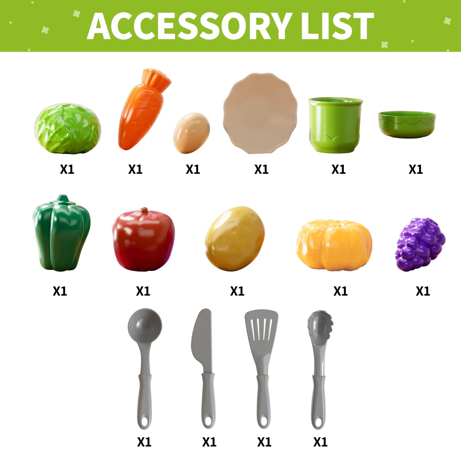 Includes a variety of mini cookware, utensils, and play food accessories, allowing children to pretend, play, and explore real-world kitchen tasks in a fun, hands-on way.