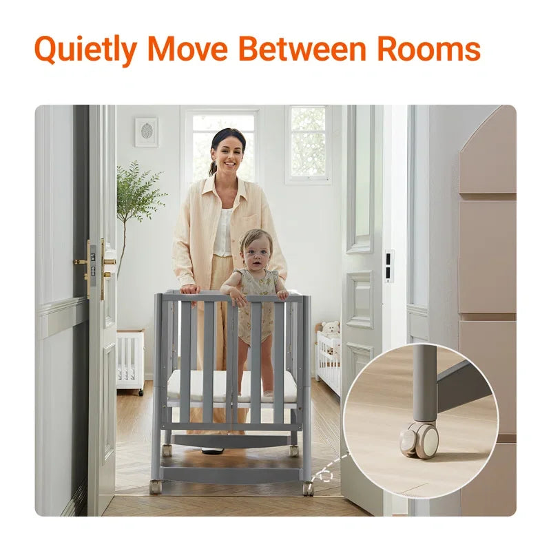 🩶 MAMAZING 6-in-1 Convertible Mini Crib – Grey (Metal Frame)