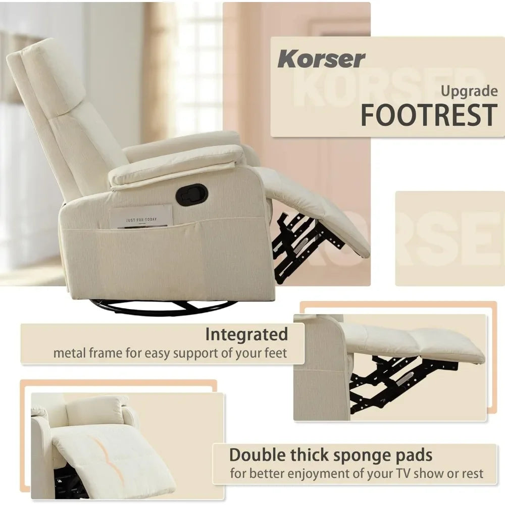 Whether you're furnishing a nursery or upgrading your cozy reading corner, this swivel rocker recliner delivers the ideal balance of comfort, durability, and space-conscious design—all wrapped in a soft, stylish chenille finish.